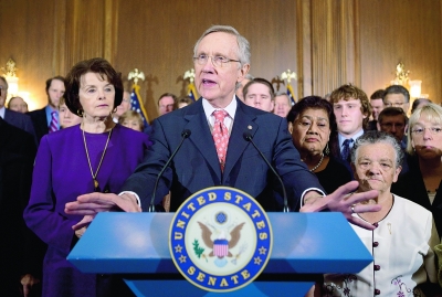 據美國當地媒體7月31日報道,美國兩黨在提高債務上限問題上接近達成協(xié)議,以免美國政府發(fā)生債務違約。兩黨領導人7月31日上午將對國會議員通告最新進展,為接下來的投票做準備。 圖為7月30日,在美國首都華盛頓的國會大廈,參議院民主黨領袖里德(前)出席新聞發(fā)布會。