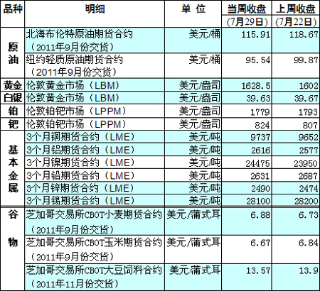 國際大宗商品期貨價格明細表[2011-07-25]