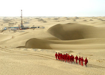 勘探開發(fā)人員在茫茫塔里木盆地尋找油氣。任國(guó)良/攝 |