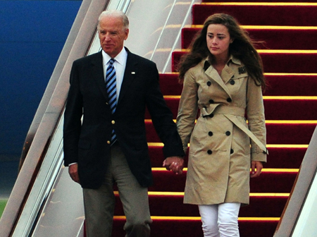 17日,美國副總統(tǒng)拜登抵達(dá)北京,開始對中國進(jìn)行為期6天的正式訪問。圖為拜登和他的孫女走下飛機(jī)。 據(jù)法新社報(bào)道,時(shí)值美國國債評級遭遇歷史性下調(diào)之際,拜登此行目的在于修復(fù)美國的國家形象。 另據(jù)美國財(cái)政部副部長拉爾·布雷納德日前介紹,作為全程參與美債談判的白宮高官,拜登將向中方表明美國正采取有力措施處理債務(wù)問題。