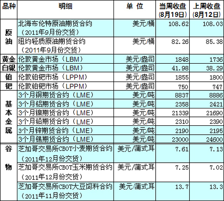 國(guó)際大宗商品期貨價(jià)格明細(xì)表[2011-08-22]