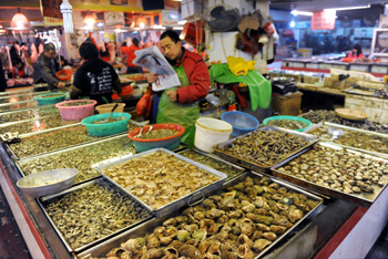 受日本核電站事故等因素的影響,青島海鮮銷量有所下滑,較2010年同期日交易量減少3成左右。資料照片 |