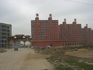 保全莊項(xiàng)目由15萬(wàn)平方米蔬菜交易市場(chǎng)以及15萬(wàn)平方米產(chǎn)權(quán)商鋪、住宅、公寓、商務(wù)寫(xiě)字樓組成。2008年上半年,該項(xiàng)目高調(diào)亮相,一度被捧為內(nèi)蒙古商業(yè)地產(chǎn)投資領(lǐng)域的“黑馬”!督(jīng)濟(jì)參考報(bào)》記者8月24日在現(xiàn)場(chǎng)看到,項(xiàng)目主體工程已基本完工,七個(gè)交易大廳被13幢商住樓、5棟商鋪圍成一圈。據(jù)相關(guān)人士介紹,該項(xiàng)目原來(lái)規(guī)劃建設(shè)冷鮮庫(kù)、深加工車(chē)間、倉(cāng)庫(kù)、物流配送中心、農(nóng)藥殘留檢測(cè)中心等配套設(shè)施,如今開(kāi)發(fā)商已無(wú)力再投資建設(shè),交易市場(chǎng)徒有一個(gè)“空殼子”,成了半拉子工程。