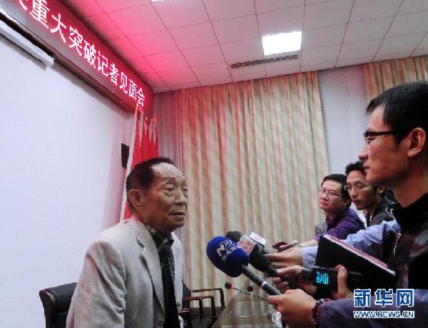 9月19日下午,在湖南省雜交水稻研究中心舉行的“超級(jí)雜交稻第三期目標(biāo)攻關(guān)重大突破記者見面會(huì)”上,袁隆平一襲白色西裝“亮相”。面對(duì)記者們“長槍短炮”的圍攻,老先生抑制不住內(nèi)心的激動(dòng)和興奮。