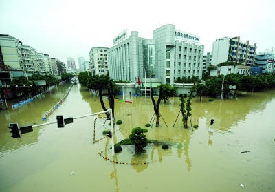 圖為上漲的江水淹進了重慶合川城區(qū)街頭(9月20日攝)。