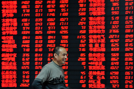 10月12日,股民在安徽阜陽(yáng)市一家證券營(yíng)業(yè)部?jī)?nèi)關(guān)注股市行情。 當(dāng)日,伴隨投資者對(duì)貨幣政策年內(nèi)轉(zhuǎn)向的預(yù)期升溫,滬深股市強(qiáng)勁反彈,上證綜指和深證成指分別以2420點(diǎn)和10425.93點(diǎn)報(bào)收,較前一交易日收盤大漲3.04%和3.58%。