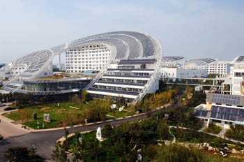 德州市太陽谷集中展示了以太陽能為主的多種節(jié)能技術(shù)相結(jié)合的節(jié)能建筑。記者 郭緒雷