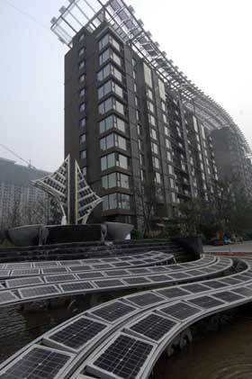 記者在金紫荊花園小區(qū)看到,這里的樓頂上裝有太陽能光伏電站,可以滿足地下停車場(chǎng)、庭院、樓道、儲(chǔ)藏間和綜合辦公樓等公共照明需要,年節(jié)電6.3萬千瓦時(shí)。所謂“5555”光電工程,就是在城區(qū)50個(gè)主要路口安裝使用太陽能光電信號(hào)燈,在5條新建道路安裝太陽能路燈,在5個(gè)住宅小區(qū)、5個(gè)新建景區(qū)全面應(yīng)用太陽能光伏照明燈。目前,這一工程進(jìn)展順利。