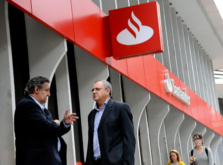 10月18日,人們?cè)诎臀骼锛s熱內(nèi)盧一家銀行外交談。 當(dāng)日,持續(xù)21天的巴西銀行業(yè)大罷工宣告結(jié)束。經(jīng)與工會(huì)的反復(fù)談判,全國(guó)銀行聯(lián)合會(huì)同意將銀行員工的工資提高9%。