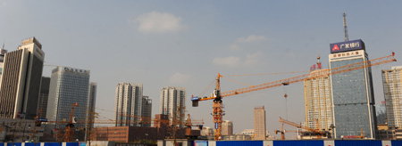 國(guó)家統(tǒng)計(jì)局10月18日發(fā)布2011年前三季度經(jīng)濟(jì)數(shù)據(jù),國(guó)民經(jīng)濟(jì)保持平穩(wěn)較快發(fā)展。其中,全國(guó)房地產(chǎn)開(kāi)發(fā)投資44225億元,同比增長(zhǎng)32.0%,比上半年回落0.9個(gè)百分點(diǎn)。圖為沈陽(yáng)市一個(gè)工地正在施工之中。