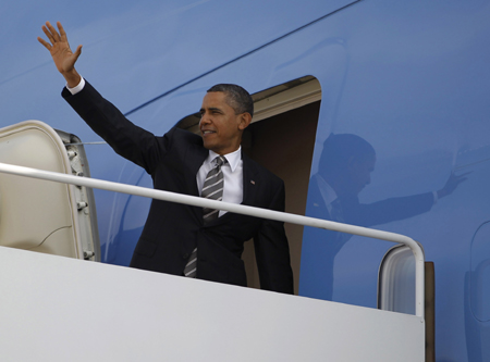 據(jù)外電報道,美國白宮的一名官員稱,美國總統(tǒng)奧巴馬將在本周公布一系列旨在扶持美國經(jīng)濟的行動計劃,這些計劃不需要獲得國會批準,其中一項計劃將使得屋主更加容易地對其抵押貸款進行再融資。 這名白宮官員稱,奧巴馬將在始于24日的三天西部各州視察之旅中公布這些計劃中的第一項。該官員還稱,奧巴馬將在視察內(nèi)華達州時就改革抵押貸款規(guī)則的問題發(fā)表講話。 圖為奧巴馬24日啟程前在飛機上揮手。
