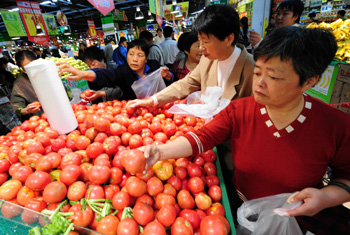 商務部25日公布的監(jiān)測數(shù)據(jù)顯示,食用農產品價格繼續(xù)回落。截至上周(10月17日至23日),18種蔬菜平均批發(fā)價格比前一周下降2.5%,其中生菜、大白菜、白蘿卜降幅分別為8.8%、8.3%和8.3%,油菜、芹菜、西紅柿分別下降8.2%、8%和7.6%。雞蛋市場貨源充足,零售價格比前一周下降0.8%,降幅擴大0.4個百分點,比9月底下降1.6%。