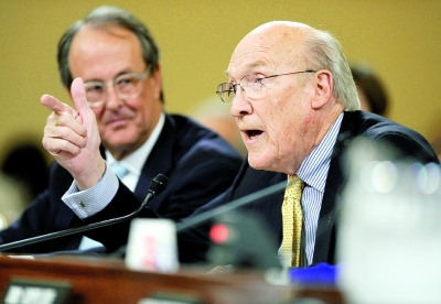 11月1日,在美國(guó)首都華盛頓國(guó)會(huì)山,共和黨前聯(lián)邦參議員艾倫·辛普森出席削減赤字特別委員會(huì)舉行的聽(tīng)證會(huì)。