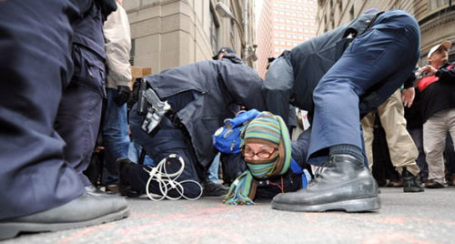 在紐交所附近抗議的示威者遭到逮捕