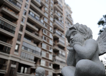 受宏觀政策影響,今年1至10月份江西房地產(chǎn)開發(fā)投資進(jìn)一步回落,環(huán)比1至9月回落3.4個百分點(diǎn),商品房銷售持續(xù)下滑。圖為南昌市紅谷灘新區(qū)一處商品房樓盤前的雕塑。記者