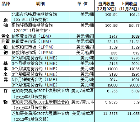 國(guó)際大宗商品期貨價(jià)格明細(xì)表[2011-12-05]