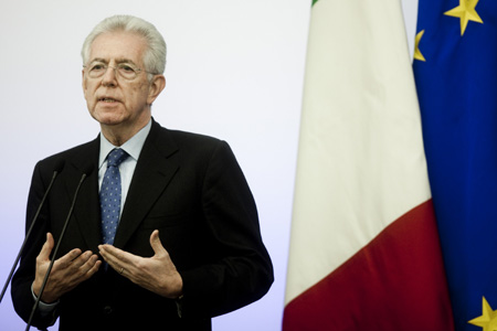 12月4日晚,意大利總理馬里奧·蒙蒂在羅馬出席內(nèi)閣會議后的新聞發(fā)布會。 當日,意大利政府通過旨在削減公共開支、推進結(jié)構(gòu)改革、促進經(jīng)濟增長的“緊急”改革方案,方案涉及300億歐元(約402億美元)。為了幫助國家擺脫債務危機并重振經(jīng)濟,馬里奧·蒙蒂還主動放棄工資。