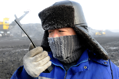 進(jìn)入1月下旬以來,內(nèi)蒙古呼倫貝爾地區(qū)出現(xiàn)持續(xù)超低溫天氣,最低氣溫達(dá)到零下43度,并導(dǎo)致了罕見的“冰霧”現(xiàn)象,給生產(chǎn)和生活造成巨大影響。為保證本地區(qū)電廠和民用煤用戶的煤炭供應(yīng),神華集團(tuán)神寶能源公司啟動應(yīng)急預(yù)案,確保煤炭生產(chǎn)高位安全運行。圖為煤礦管理人員在現(xiàn)場組織指揮生產(chǎn)。