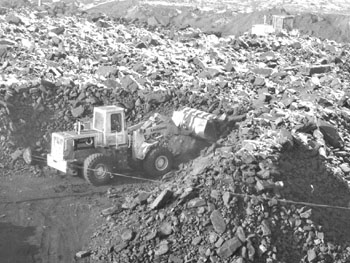 在礦坑附近,進(jìn)出堆煤場(chǎng)的道路上,煤灰和浮土有近半尺厚,運(yùn)煤車輛行駛在這種簡(jiǎn)易道路上,有如船行水中,劈波斬浪。在沒(méi)有風(fēng)的情形下,礦區(qū)上空已籠罩在一團(tuán)“黑云”之中。據(jù)附近居民形容,當(dāng)有風(fēng)之時(shí),灰塵和煤塵隨風(fēng)飄揚(yáng),遮天蔽日,延綿數(shù)公里。