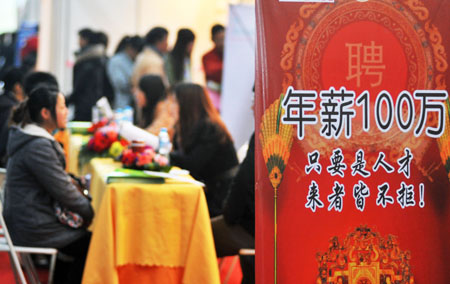 2月11日,南寧國際會展中心,一家單位打出“只要是人才 來者皆不拒”的廣告。