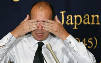 2011年10月中旬的一個(gè)下午,倫敦中心區(qū)維亞警局的柜式長桌后,一名警官困惑地?fù)P起了眉毛。在他面前正站著一位身著大衣,系著領(lǐng)帶且談吐不俗的中年紳士。這位先生一頭短發(fā),黑色的發(fā)際線已經(jīng)開始后退,兩眼稍嫌靠近,下巴大而圓。他咕噥著日本黑幫組織(theYakuza)的黑暗,和自己在東京破獲的一樁企業(yè)丑聞,并自稱曾是一家全球性公司的總裁兼CEO,因?yàn)榻衣兑粯敦?cái)富蒸發(fā)案而遭遇解雇。根據(jù)來自新聞記者和生意上的伙伴的消息,現(xiàn)在他有理由相信,自己可能被干掉。