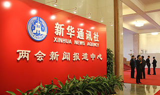 位于人民大會堂內(nèi)的新華社兩會新聞報道中心。