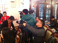 全國(guó)政協(xié)委員李稻葵將于今天上午11:00在北京國(guó)際飯店接受集體采訪(fǎng),采訪(fǎng)尚未開(kāi)始已有二十余位記者提前搶占有利位置,攝影攝像記者也在提前調(diào)試設(shè)備。