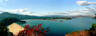 密云水庫是亞洲最大的水庫,有“燕山明珠”之稱。它位于北京東北密云縣城西北,坐落于燕嶺群峰之中,橫截潮、白兩河,環(huán)湖公路110公里,乘車轉(zhuǎn)一圈需三個(gè)多小時(shí)。密云水庫是具有防洪、灌溉、發(fā)電和城市用水等綜合功能的特大型水庫,是京城用水最主要的供水源地。