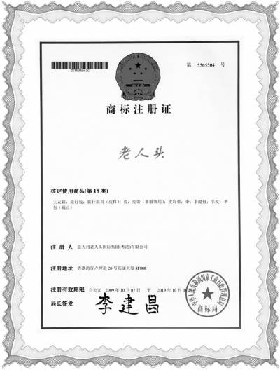 該公司副總經(jīng)理李容女士告訴記者,“老人頭”品牌和意大利沒有任何關系,不管所有包含“老人頭”的公司掛靠哪里,真正的商標“只有一個”,即廣州老人頭皮具有限公司注冊的老人頭商標,其他所有自稱“××老人頭”的品牌均為假貨。而且,中國所有“老人頭”(不論真假)的加工、銷售都在國內(nèi)進行。李容說,現(xiàn)在廣州老人頭皮具有限公司正在辦理“老人頭”商標的買斷事宜。