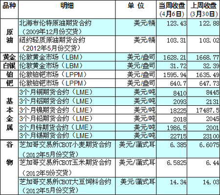 國際大宗商品期貨價格明細表[2012-04-09]