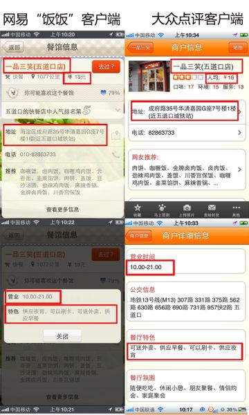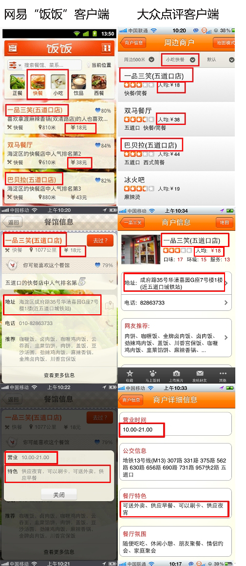 大眾點(diǎn)評與網(wǎng)易飯飯客戶端對比(圖片由大眾點(diǎn)評提供)