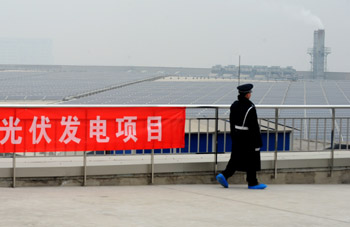圖為位于京東方第8.5代TFT-LCD生產(chǎn)線三座主廠房屋頂?shù)木〇|方北京8.5代線廠房光伏發(fā)電項目。項目總裝機容量5000千瓦,年節(jié)約煤炭3200噸。新華社記者 羅曉光/攝 |