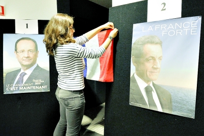 法國總統(tǒng)選舉第二輪投票6日全面展開,現(xiàn)任總統(tǒng)薩科齊和左翼社會(huì)黨候選人奧朗德為下一屆總統(tǒng)職位展開最后角逐。法國本土投票站最晚于當(dāng)晚20時(shí)(北京時(shí)間7日凌晨2時(shí))關(guān)閉,據(jù)悉此后不久即公布初步統(tǒng)計(jì)結(jié)果。 奧朗德主張尋求變革,回應(yīng)選民有關(guān)失業(yè)、購買力、安全等一系列問題的擔(dān)憂,并承諾將引導(dǎo)歐洲重返加速增長和擴(kuò)大就業(yè)的道路。而代表右翼保守勢(shì)力的薩科齊主打緊縮、增稅和保護(hù)主義牌。 圖為一名工作人員在澳大利亞悉尼市法語聯(lián)盟語言學(xué)校中設(shè)立的海外投票站點(diǎn)布置會(huì)場(chǎng)。
