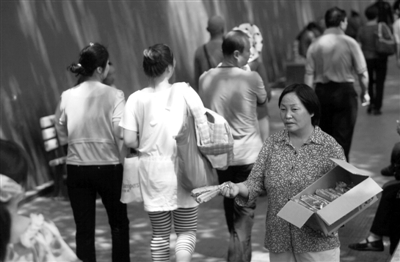 僅在前門附近地區(qū),賣冰棍的就有數(shù)十人。郭蘭說,他們基本沒有固定的地盤,由于要躲避城管和公安,一般是邊走邊喊著賣,“這樣賣得快!