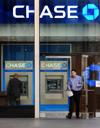 美國(guó)最大銀行摩根大通5月10日宣布旗下投資部門(mén)一項(xiàng)交易組合虧損20億美元,震驚全球金融界,讓英美等國(guó)銀行監(jiān)管呼聲再次高漲。 圖為2010年4月14日,一名男子從美國(guó)紐約一家摩根大通銀行營(yíng)業(yè)點(diǎn)走出。記者