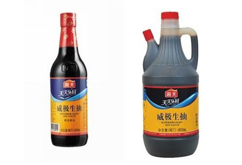威極調(diào)味食品公司生產(chǎn)醬油和海天醬油對比。