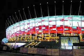據(jù)介紹,2012年歐錦賽波蘭賽區(qū)有四個(gè)比賽場(chǎng)館,分別是位于華沙、格但斯克、波茲南和弗羅茨瓦夫市。目前,這4個(gè)比賽場(chǎng)館已經(jīng)準(zhǔn)備就緒,可投入使用。其中,華沙國(guó)家體育場(chǎng)距離市中心2公里,是波蘭國(guó)內(nèi)最大的一個(gè)現(xiàn)代化體育場(chǎng),是歐錦賽開(kāi)幕式和主場(chǎng)比賽地,于2008年5月15日正式動(dòng)工興建,歷時(shí)3年多,建設(shè)總投資近19.15億茲羅提(約合6.177億美元),共有58145個(gè)座位。