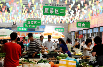 6月9日,市民在山西太原市大營(yíng)盤菜市場(chǎng)選購(gòu)食品。當(dāng)日,國(guó)家統(tǒng)計(jì)局發(fā)布報(bào)告,5月份全國(guó)居民消費(fèi)價(jià)格總水平(CPI)同比上漲3%。新華社記者