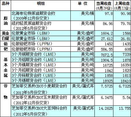 · 國(guó)際大宗商品期貨價(jià)格明細(xì)表[2012-06-18] 2012-06-18