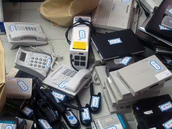 泰國(guó)警方現(xiàn)場(chǎng)繳獲的用于詐騙的工具。圖片由江蘇警方提供 |