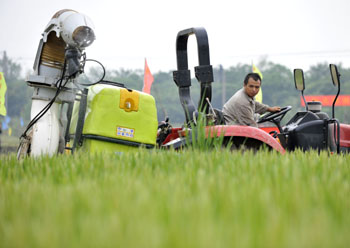 在占地80畝的春暉農(nóng)機(jī)場院內(nèi),停放著320多臺(套)大型收割機(jī)、插秧機(jī)、太陽能滅蟲燈等各種農(nóng)用機(jī)器。農(nóng)技人員告訴記者,這些農(nóng)機(jī)不少都是從德國、日本等國進(jìn)口的。