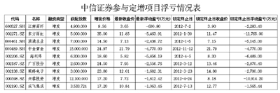 除此之外,以鎖定終止日收盤股價計算,中信證券在洪城水業(yè)上浮虧5145萬元,浮虧率達50.69%;在廣百股份上浮虧2870萬元,浮虧率達45.05;在順絡電子上浮虧2700萬元,浮虧率達37.82%;在海利得上浮虧6489萬元,浮虧率達55.38%;在江南高纖上浮虧2283萬元,浮虧率達54.43%;在成飛集成上浮虧1565萬元,浮虧率達25.75%;而按最新市值計算,在中金黃金上也浮虧5385萬元。9個虧損項目共計浮虧約4.94億元。