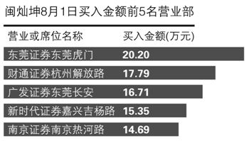 值得注意的是,4次上榜的國信證券深圳泰然九路營業(yè)部,只有1次進入買入名單,而8月1日買入的前5名營業(yè)部,之前卻不見上榜蹤影。