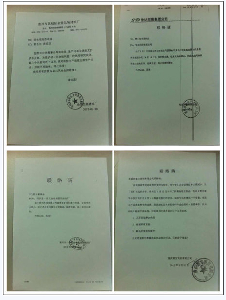根據(jù)目前獲得的供應(yīng)商聯(lián)絡(luò)函,停止供貨的雷士供應(yīng)商包括惠州一品五金電器塑膠制品廠、重慶雷寶商貿(mào)有限公司、金煜包裝材料廠以及世達(dá)印刷有限公司。