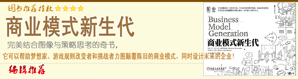 這本書概念清晰、邏輯嚴(yán)謹(jǐn)、表述簡(jiǎn)練,而且設(shè)計(jì)的視覺化程度很高,是分析與構(gòu)建商業(yè)模式的專業(yè)指導(dǎo)手冊(cè)。 |