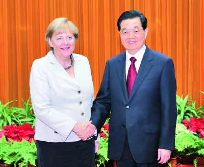 國(guó)家主席胡錦濤30日下午在人民大會(huì)堂會(huì)見(jiàn)了來(lái)華訪問(wèn)并出席第二輪中德政府磋商的德國(guó)總理默克爾。