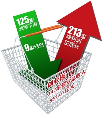 截至8月底,347家在創(chuàng)業(yè)板上市的公司2012年中報已全部披露完畢。統(tǒng)計數(shù)據(jù)顯示,報告期內(nèi),347家創(chuàng)業(yè)板公司共實現(xiàn)營業(yè)總收入合計為837.07億元,平均增長率為20.72%。213家創(chuàng)業(yè)板公司在報告期內(nèi)實現(xiàn)凈利潤同比正增長,占比61.38%。但虧損公司數(shù)量較往年有所增加。