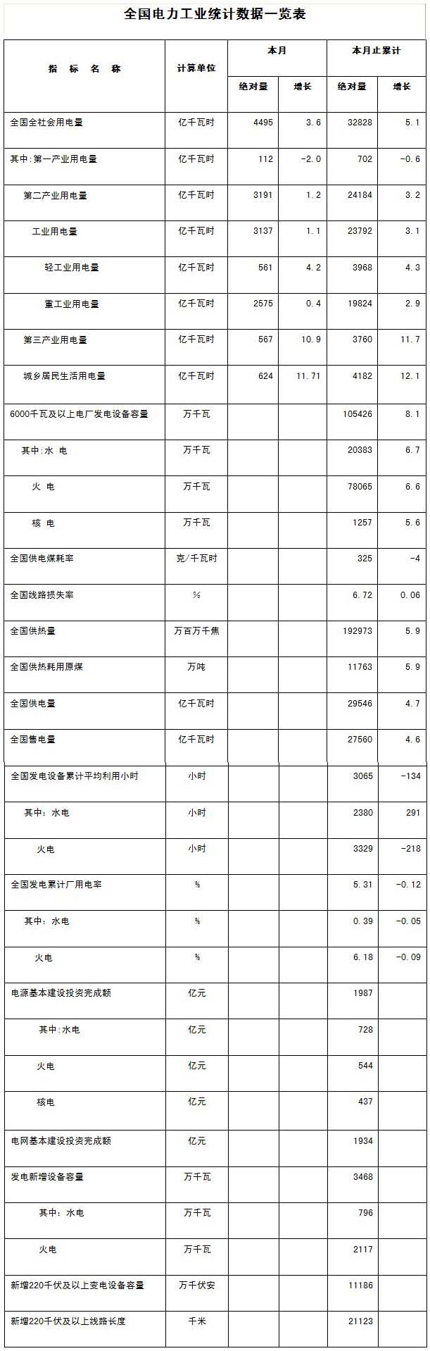 8月份,全社會用電量4495億千瓦時,同比增長3.6 %。