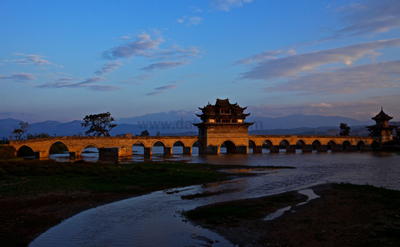 龍橋位于建水城西3公里的瀘江與塌沖河上,因兩河蜿蜒如龍,故而得名,俗稱“十七孔橋”,是一座三閣十七孔大石拱橋,是云南省規(guī)模最大、藝術(shù)價值最高的一座多孔連拱橋,已列入中國造橋史冊。1965年我國著名橋梁專家茅以升前來考察,將其列為全國大型古橋之一,遂被定為云南省重點(diǎn)文物保護(hù)單位。