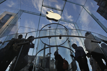 9月19日,顧客造訪美國紐約第五大道上的蘋果公司商店。 美國蘋果公司說,在iPhone5手機(jī)放開預(yù)訂首日,接到的預(yù)訂數(shù)量超過200萬部,大部分預(yù)訂貨品將于21日發(fā)給客戶。